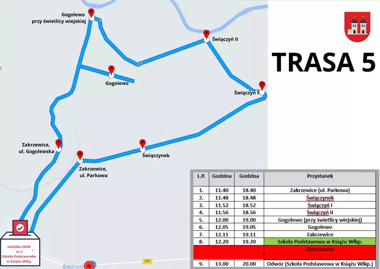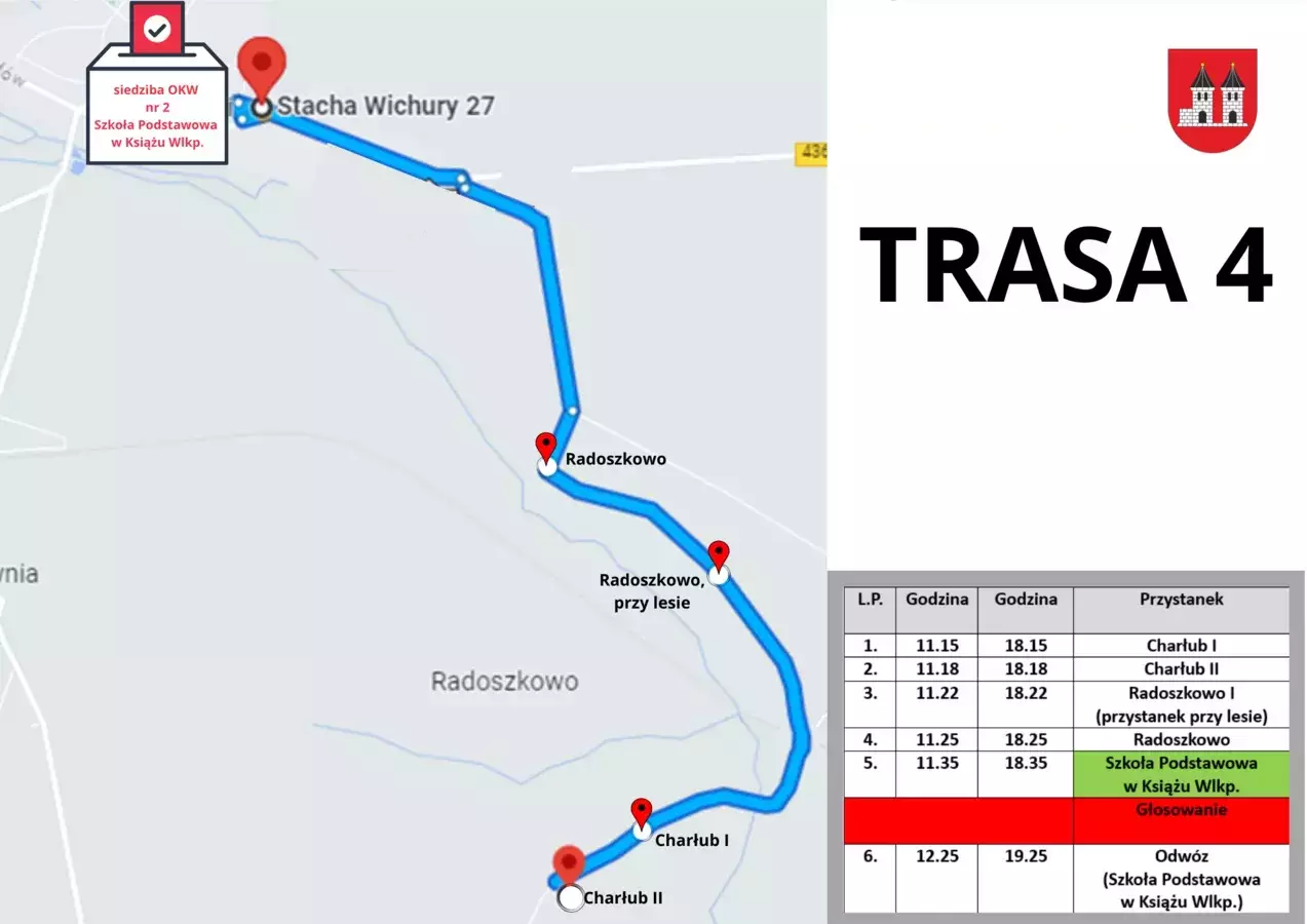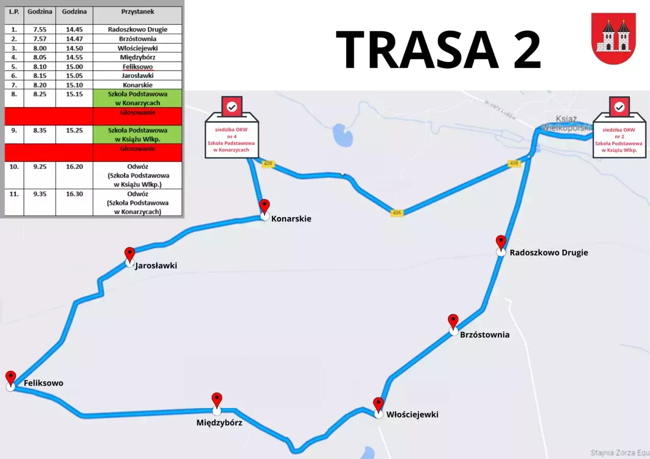 Burmistrz Książa Wlkp. informuje, iż zgodnie z artykułem 37f ustawy z dnia 5 stycznia 2011 roku - Kodeks wyborczy, w dniu wyborów posłów do Parlamentu Europejskiego (9 czerwca) zorganizowany zostanie bezpłatny gminny przewóz pasażerski dla wyborców ujętych w spisie wyborców w stałych obwodach głosowania położonych na obszarze Gminy Książ Wlkp.