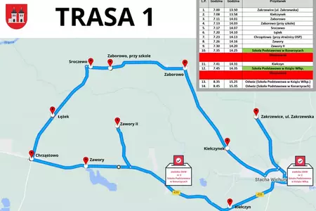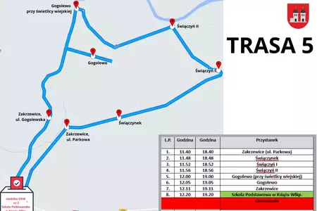 W załączniku poniżej znajdą Państwo wykaz linii komunikacyjnych transportu ze szczególnym uwzględnieniem przystanków oraz godziny odjazdów każdego z nich.