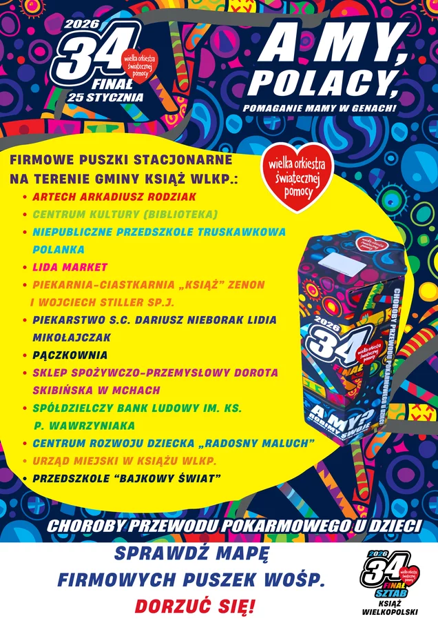 Firmowe puszki Wielkiej Orkiestry Świątecznej Pomocy na terenie gminy Książ Wlkp.