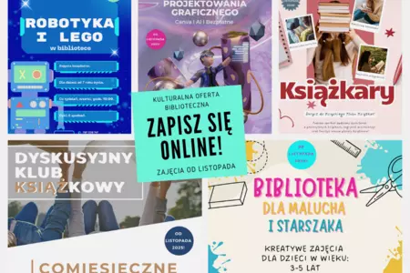 Wraz z nadejściem kalendarzowej jesieni, gdzie dni stają się coraz krótsze, a noce dłuższe ksiąskie ośrodki społeczno - kulturalne nie zwalniają tempa, wręcz przeciwnie wychodzą z ogromną ilością zajęć skierowanych dla dzieci i młodzieży. Serdecznie zachęcamy do skorzystania z bogatej oferty Centrum Kultury Książ Wlkp., Biblioteki Publicznej w Książu Wlkp. oraz Ośrodka Pomocy Społecznej w Książu Wlkp., śledząc strony internetowe i media społecznościowe. W celu poznania szczegółowych informacji oraz ilości dostępnych miejsc, zapraszamy do kontaktu telefonicznego z wyżej wymienionymi organizacjami. Poniżej kilka przykładowych ofert, z których warto skorzystać.