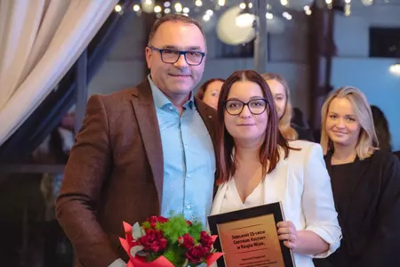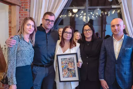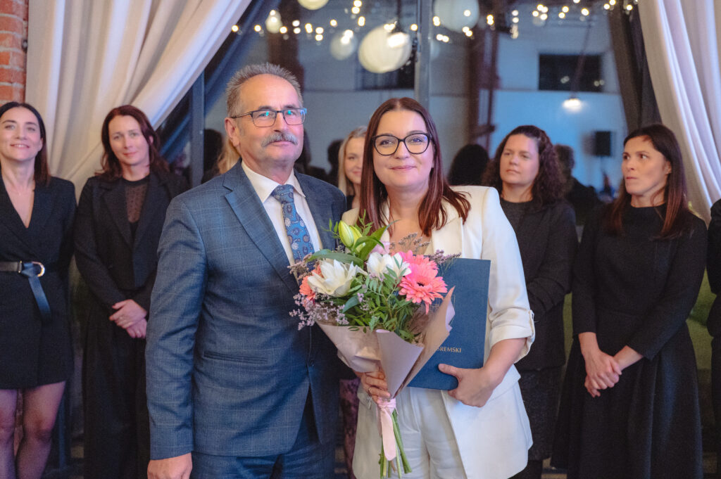 Oczywiście jak na jubileusz przystało były kwiaty, listy gratulacyjne oraz upominki dla całego zespołu, z Panią Dyrektor na czele ze strony zaproszonych. Wyjątkowym gestem było przekazanie vouchera o wartości 100 000 zł przez Panią Mirelę Grześkowiak - środki przeznaczone zostaną na zakup samochodu dostawczego, co znacząco usprawni codzienną pracę organizacyjną Centrum i pozwoli lepiej realizować przyszłe projekty.