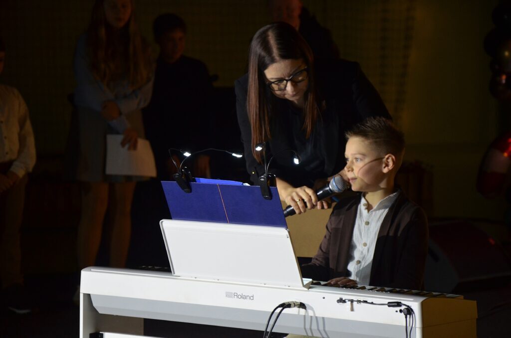 Wystąpiły również reprezentacje sekcji sportowych - siatkówki dla dzieci prowadzonej przez Patrycję Krauze czy akrobatyki, której na co dzień uczy Natalia Bartkowiak. Nie zabrakło uczestników zajęć prowadzonych w bibliotece przez Klaudię Kozłowską, w tym między innymi robotyki i projektowania graficznego oraz biblioteki dla malucha. Była to doskonała okazja do przeżycia pięknego świątecznego czasu przy tańcu i muzyce wykonywanej na najwyższym poziomie.