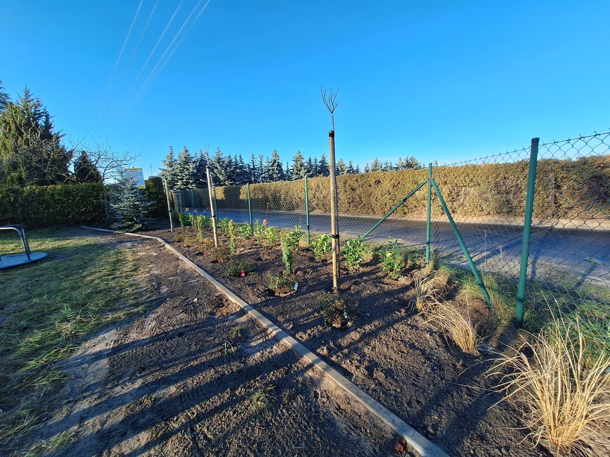 W ramach projektu przeprowadzono kompleksowe uporządkowanie i zagospodarowanie terenu wokół świetlicy. Wykonano nowe obrzeża betonowe, podbudowę z kruszywa naturalnego oraz nawierzchnię z geokraty o powierzchni 250 m². Teren został wyrównany, oczyszczony i uzupełniony nową roślinnością, co znacząco wpłynęło na jego estetykę i funkcjonalność.