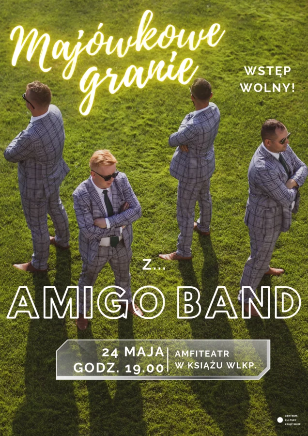 Tego samego dnia (w piątek, 24 maja) na scenie ksiąskiego Amfiteatru ponownie rozbrzmią najbardziej znane hity muzyczne w wykonaniu niezawodnego zespołu Amigo Band. Wszystkich, którzy mają ochotę na taneczną zabawę zapraszamy na parkiet. Więcej informacji na poniższym plakacie oraz na stronie internetowej Centrum Kultury Książ Wlkp., dostępnej pod adresem: https://ck-ksiazwlkp.pl/kolejne-majowkowe-granie-z-amigo-band/.