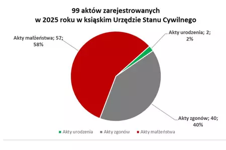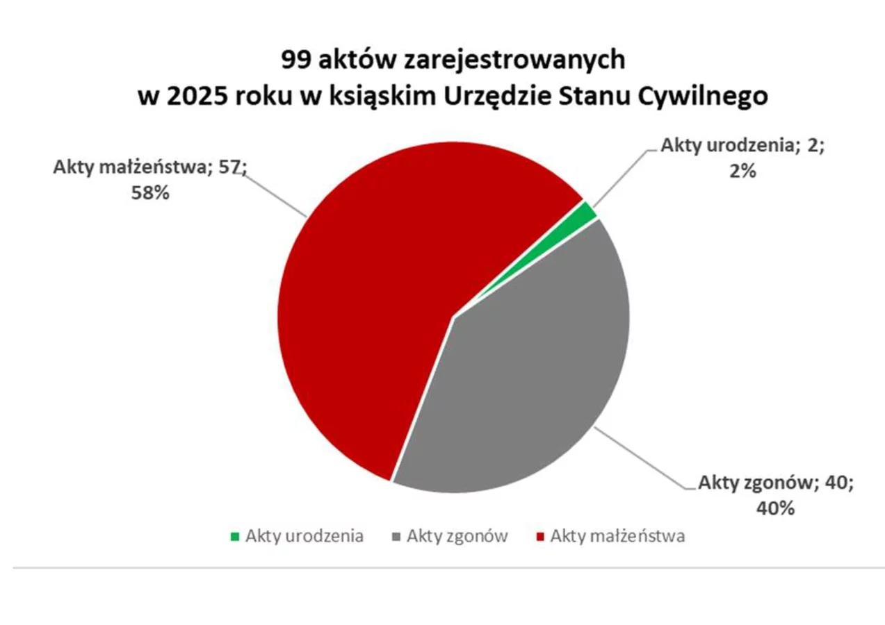 Więcej ślubów, a mniej zgonów - tak krótko można byłoby podsumować ubiegły rok, jeśli chodzi o statystyki porównawcze z działalności ksiąskiego Urzędu Stanu Cywilnego (USC) w stosunku do roku 2024.