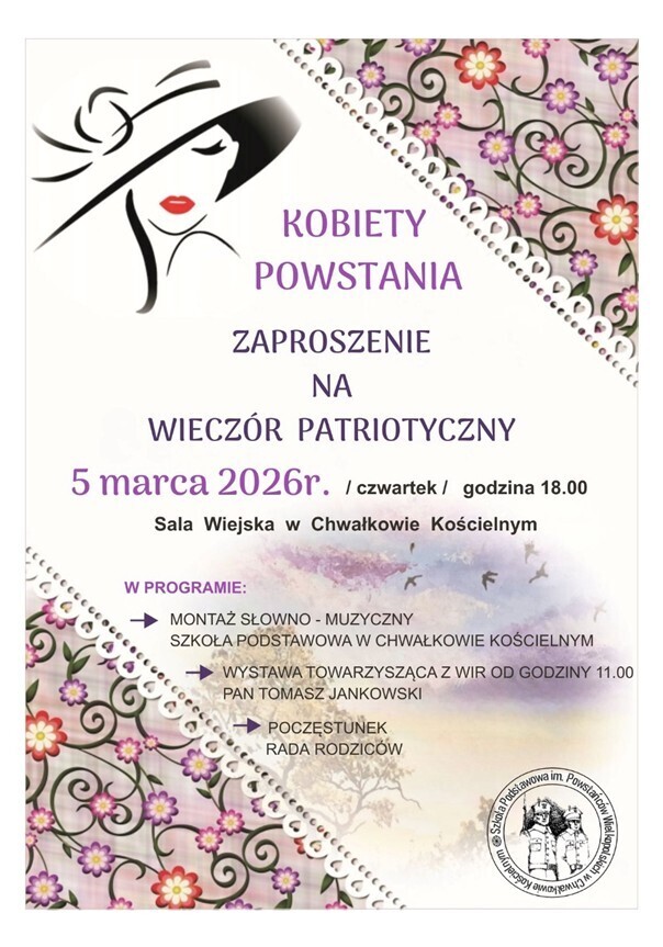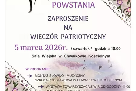wieczór patriotyczny, który odbędzie się w czwartek, 5 marca w Sali wiejskiej w Chwałkowie Kościelnym