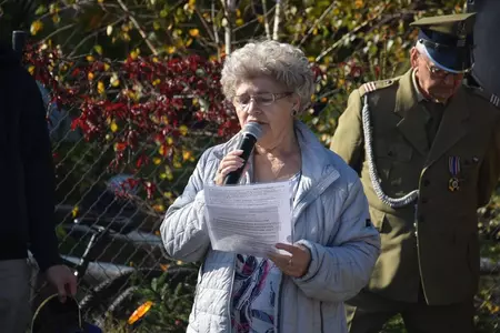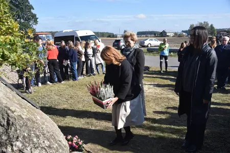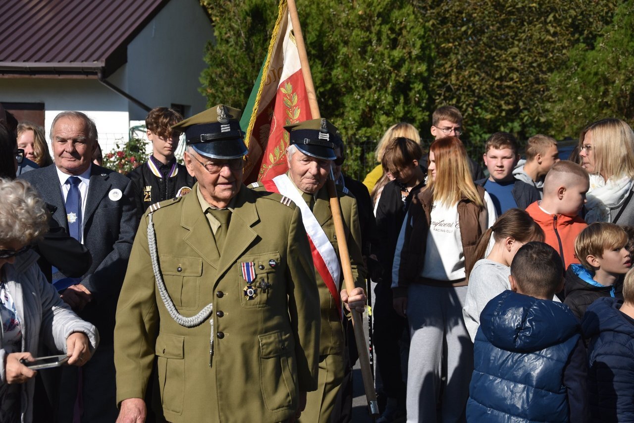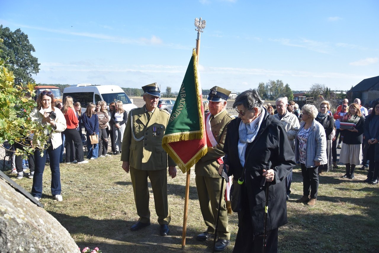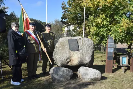 Zdjęcia przedstawiają uczestników obchodów 85. rocznicy śmierci Maksymiliana Cygalskiego przy okolicznościowym kamieniu w Zaworach.