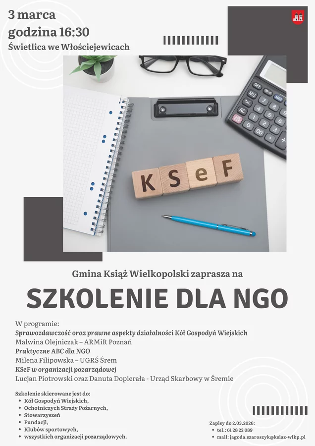 Szkolenie odbędzie się we wtorek, 3 marca o godzinie 16:30 w świetlicy wiejskiej we Włościejewicach. Zgłoszenia udziału prosimy kierować do poniedziałku, 2 marca telefonicznie pod numerem: 61 2822089 lub mailowo na adres: jagoda.szaroszyk@ksiaz-wlkp.pl .